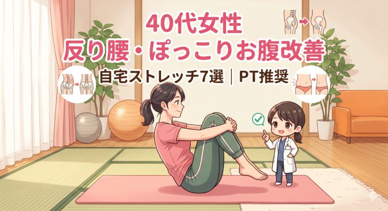 【PT実演】40代女性の反り腰を改善する自宅ストレッチ7選|ぽっこりお腹も同時にケア