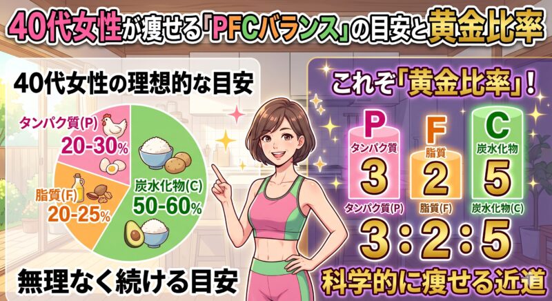 同じ40代女性でも、「健康維持の目安」と「ダイエット目的の黄金比率」は違います。順番に見ていきましょう。