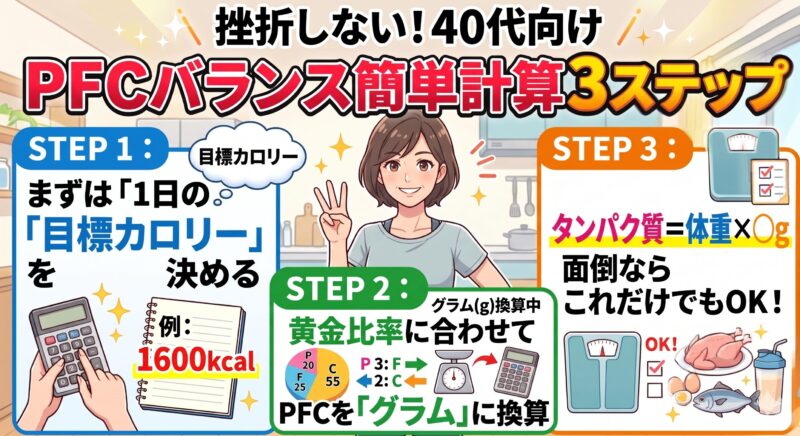 挫折しない!40代向けPFCバランスの簡単計算3ステップ